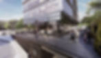 El proyecto se desplanta sobre una superficie de 801.19 m2 remetida 7 metros sobre el límite del terreno de Avenida de las Américas, generando un basamento público que absorbe el desnivel existente entre las calles y se despliega creando las rampas de acceso al edificio.
