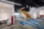 El trazo de los pasillos y oficinas no es ortogonal, sino que presenta una ligera inclinación o ángulo que permite jugar con diferentes perspectivas conforme se camina por los pasillos. Para privacidad en las oficinas de los managers se diseñaron gráficos en los cristales inspirados en el papel picado del tradicional día de muertos. El branding de los productos, personas y un muro con alebrijes que, puede ser pintado por todos los que disfrutan de la cafetería, son ejemplos de elementos visuales que enriquecen los espacios.