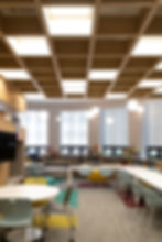 En las aulas se promueve que la enseñanza no sea frontal, sino en 360° utilizando elementos de apoyo como pintarrones móviles y corchos, así como muebles de guardado que también tienen movilidad. En los pisos se instalaron pisos vinílicos tipo madera para lograr una mayor calidez del espacio y absorción de ruido. La paleta de color cambia dependiendo del tipo del aula y también se consideró un mobiliario más versátil que incentivará el trabajo en equipo.