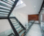 Cuenta con muros de cristal que iluminan todo el espacio durante el día; el brillo de la tarde atraviesa y se cuela en cada rincón, acentuando la calidez y la sensación de amplitud que envuelve al recorrer sus pasillos y salas deteniéndose en la escalera de cristal que da un acento especial a todo el proyecto.