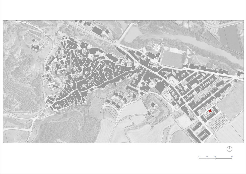 La localidad cuenta con unos 900 habitantes, forma parte de la comarca Ribera Arga-Aragón, en la merindad de Olite, y conserva un tejido urbano tradicional ligado al río que le da nombre. En este contexto se inscribe una propuesta que busca establecer una relación directa entre arquitectura, territorio y modos de vida, repensando la vivienda rural desde claves contemporáneas.
