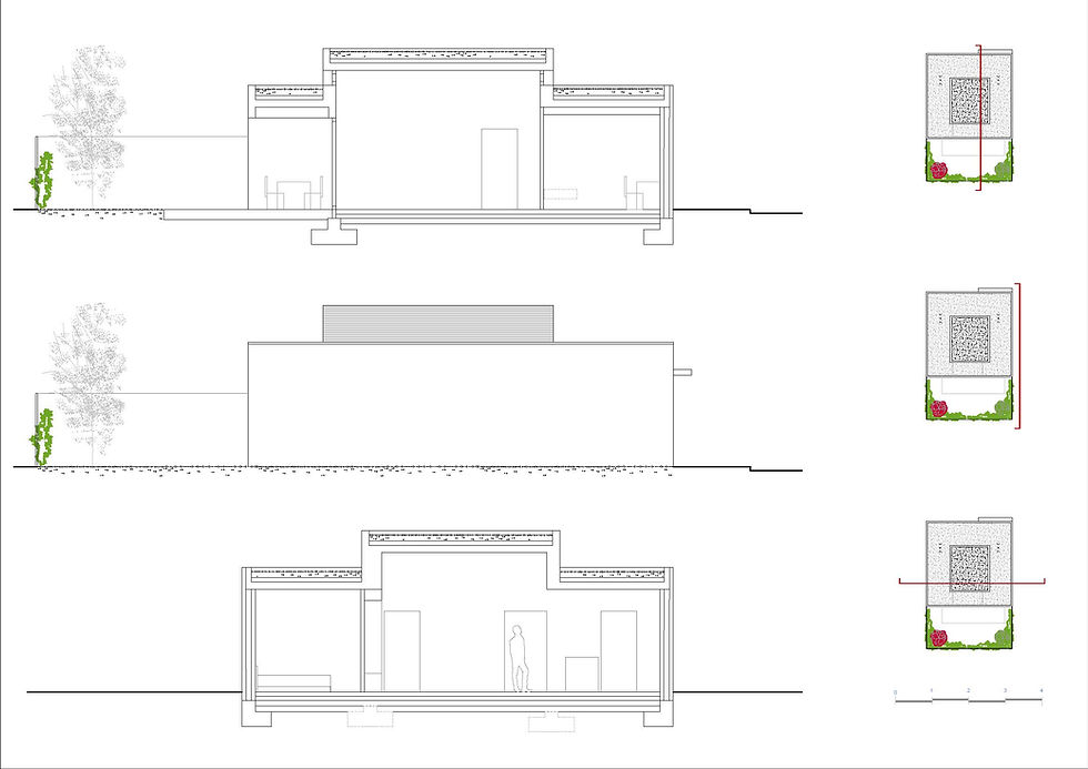 Desde este núcleo central se distribuyen los espacios serviciales con funciones más específicas —dormitorios, estudio, zonas de descanso— que se resuelven con luz natural tamizada, favoreciendo un ambiente sereno e introspectivo. Los espacios auxiliares (aseo, lavado, almacenamiento) se integran con discreción, aportando funcionalidad sin interrumpir la claridad espacial del conjunto.